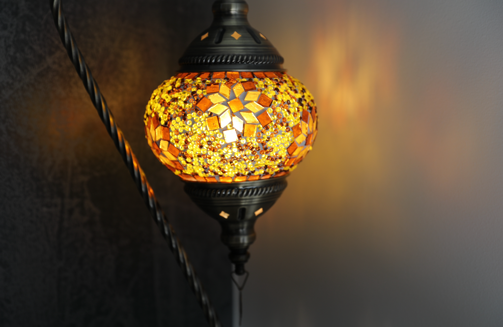 They are all original with high quality mosaic crystals. The mosaics of the lamp are made with glass beads that are joined by plaster. the plaster gives a great strength to the glass globe. The design of coloured mosaics creates a variety of reflections when the lamp is turned on, which is incredible.